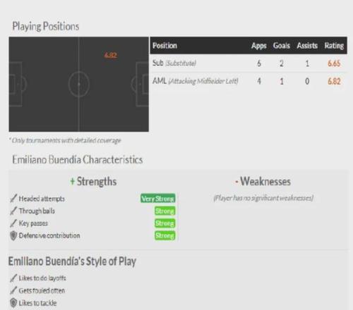 不只是维拉的先发11人,布恩迪亚也有可能成为胜负手。这名阿根廷中场在之前的一波4场英超和欧战赛事中,贡献了3球1助攻。