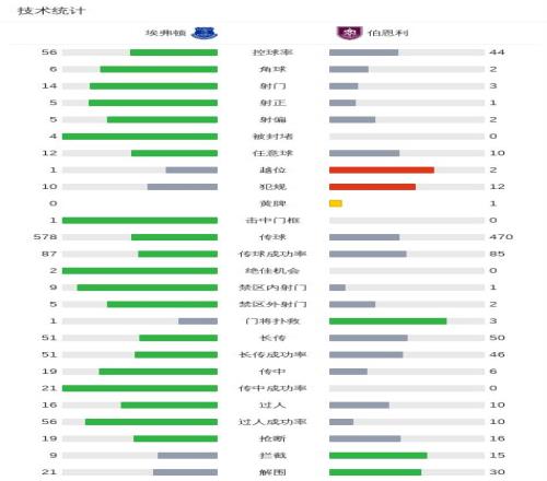 第31分钟,加纳任意球助攻,塔尔科夫斯基头槌破门,埃弗顿1-0伯恩利
